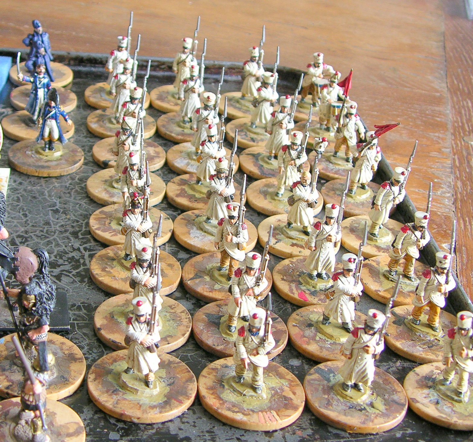 The erstwhile albino frogs (and their blue-coated officers) have been dipped and are starting to look rather better (phew!). They need some highlighting, packs and a few details, like rank chevrons on their sleeves, and then they'll be done, which is just as well as they took at least twice as long as I'd hoped. And worse, I've decided I need to paint a dozen more to make 2 units of 24.